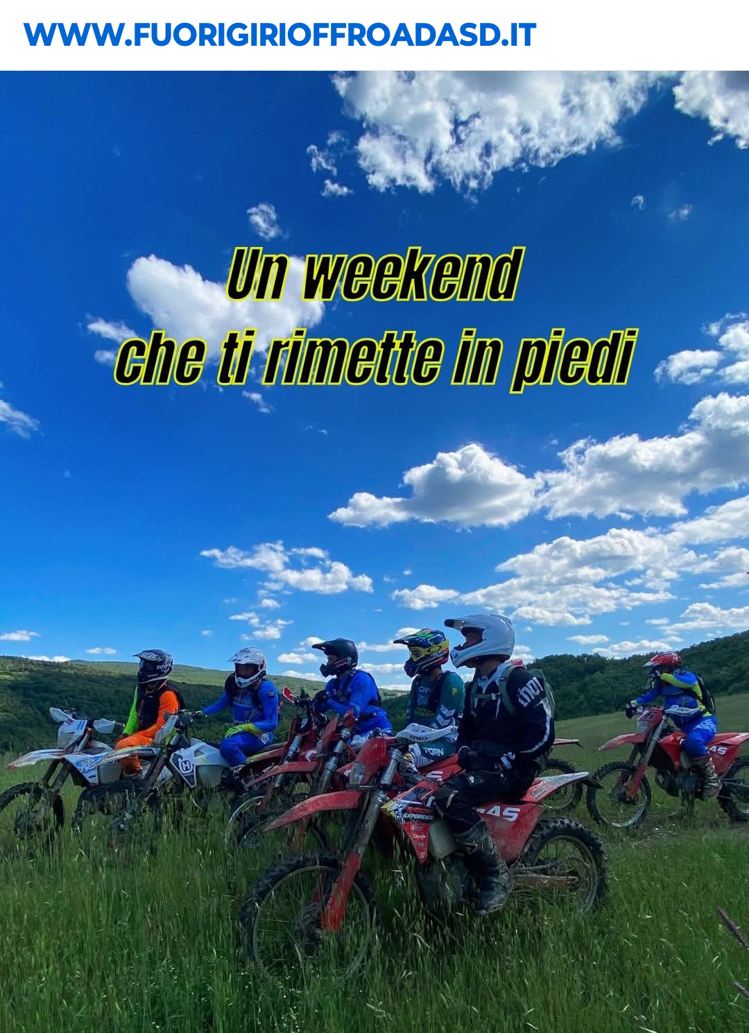 Grazie all' Associazione affiliata CSEN nella nostra regione , e'possibile partecipare a Tour ed Escursioni guidate , eventi, e raduni negli scenari della nostra bellissima regione Abruzzo .Offriamo la possibilita di pernotti, pranzi e cene in luoghi immersi nel verde dell'Abruzzo spaziando dalle passeggiate a l'Enduro estremo, percorrendo sentieri e strade in sella alle nostre amate moto off road. La difficoltà dei percorsi e' medio/hard con presenza di asfalto per il 15% circa,ma volendo riusciamo a trovare percorsi facili con lunghe strade Sterrate, accessibili anche a neofiti ,che saranno sempre affiancati dallo staff della nostra Associazione.